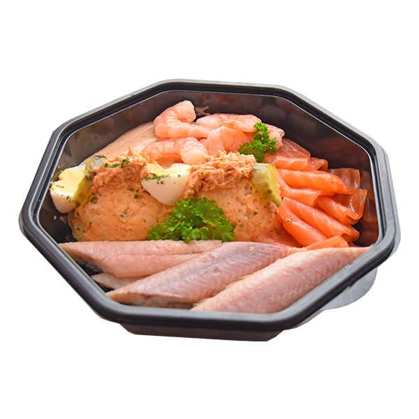 Voor 2 personen, paling/zalm/jumbo garnalen/2 bollen slaatje/saus en ei.*Uit eigen keuken